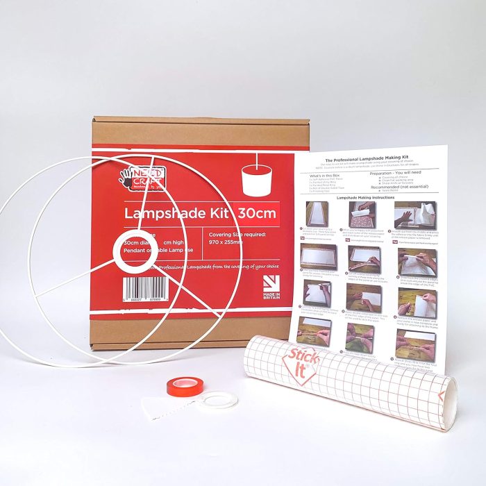 The 30cm Lampshade Making Kit is a DIY kit designed to create custom lampshades for pendant ceiling lights, table lamps, and floor lamps. This kit features a drum circle shape and is compatible with a variety of materials, including fabric, textile, and wallpaper.