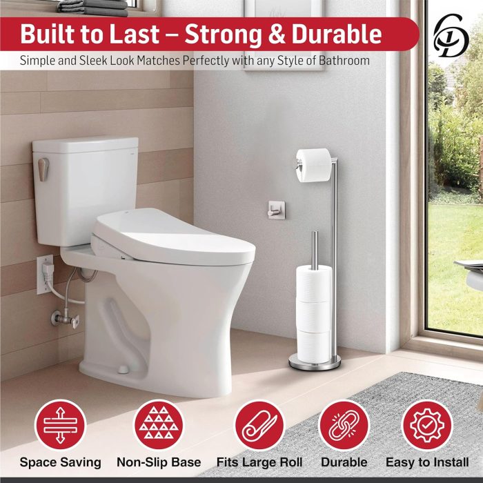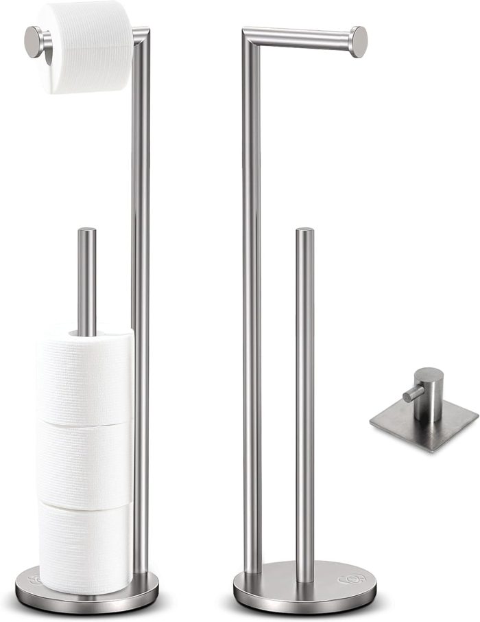 Be the first to review “CD Toilet Roll Holder Free Standing Stainless Steel – Chrome Finish Toilet Paper Holder Stand with Heavy Stable Base, Rustproof & Easy Assembly, Silver (with Additional Wall Hook)” Cancel reply
