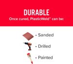 JB Weld 8237UK Plastic Weld is a fast-setting, off-white epoxy putty designed for bonding and repairing plastics. This multi-purpose, reinforced putty offers strong adhesion and durability, making it ideal for various applications.