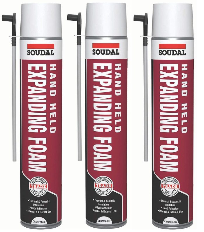 Home Diy & Tools Soudal 750ml Champagne Gap Filler Expanding Foam Handheld Spray with Nozzle & Gloves (3)