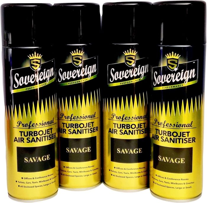Sovereign Turbojet Air Sanitiser Savage Air Freshener Blast Spray Can 4 x 500ml Bundle